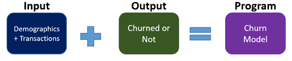 For example, if you feed in customer demographics and transactions as input data and use historical customer churn rates as your output data, the algorithm will formulate a program that can predict if a customer will churn or not. That program is called a predictive model.