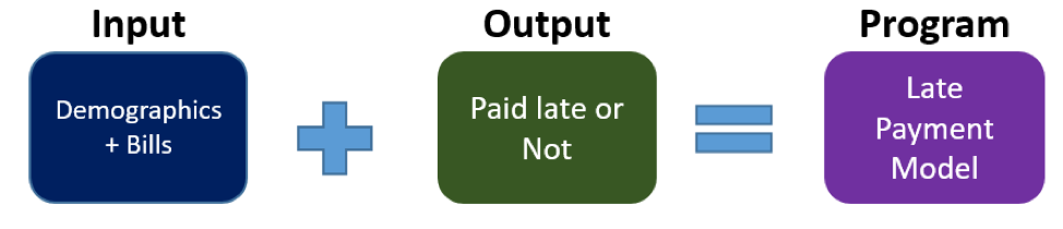 For instance, if you want to predict who will pay the bills late, identify the input (customer demographics, bills) and the output (pay late or not), and let the machine learning use this data to create your model.
